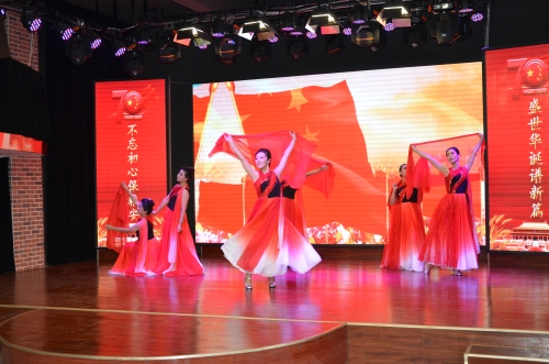 本次演出在全体干部职工合唱《向往》《我和我的祖国》中拉开帷幕,悉心精选的13个节目按序上演,异彩纷呈,现场洋溢着喜庆祥和的气氛。干部职工以歌舞、朗诵、手鼓、书画、乐曲独奏等喜闻乐见的节目形式,展现新中国成立以来的生活变迁、讴歌新时代党和国家政策带给百姓生活的巨变,抒发对祖国真挚的热爱和对美好生活的向往。