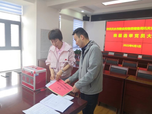 6月1日,天水市粮食和物资储备局机关党支部召开党员大会,选举产生了新一届支部委员会。