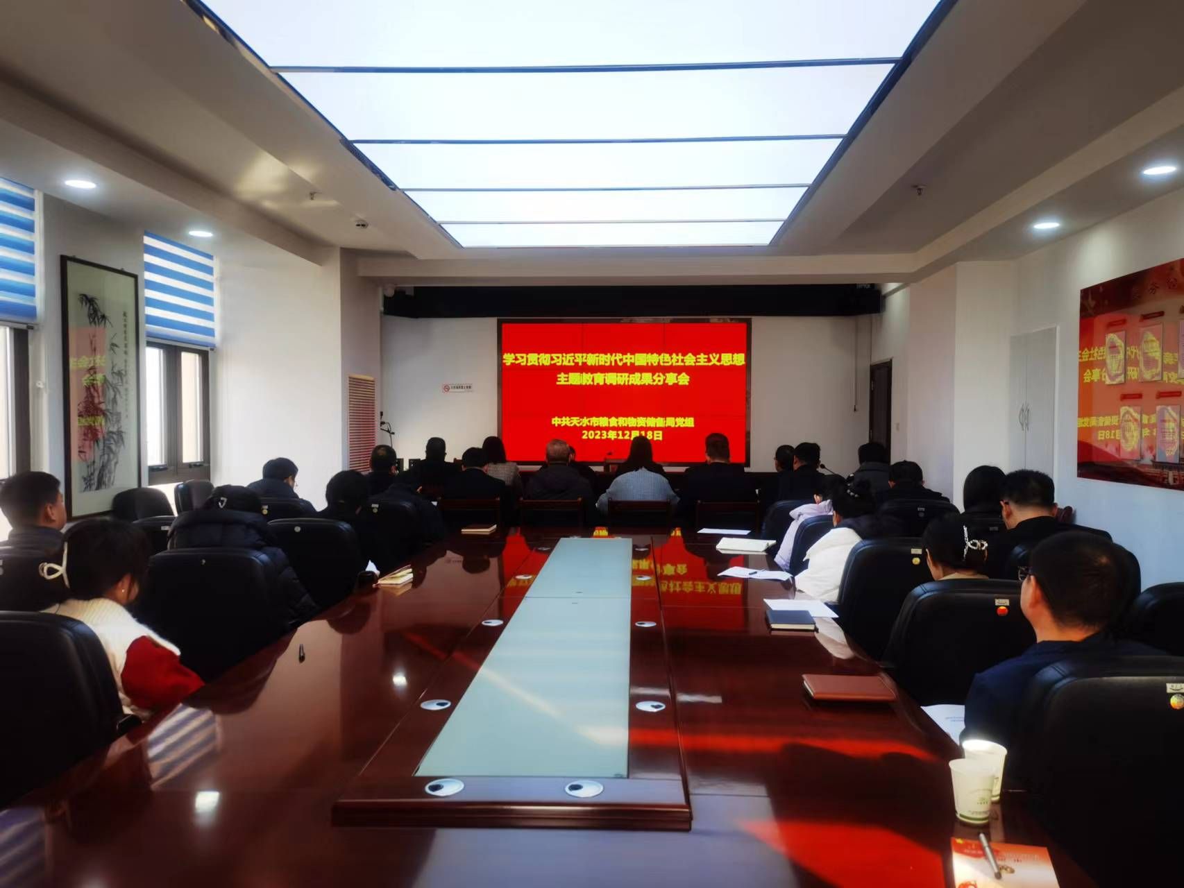 12月18日下午至12月19日上午,天水市粮食和物资储备局召开党员干部学习贯彻习近平新时代中国特色社会主义思想主题教育调研成果分享会。局领导班子成员及调研员,局机关、市粮食稽查支队全体党员干部,市粮油防治检验中心、市救灾物资储备中心及市第一粮库有限公司、市军粮供应有限公司领导班子成员共30余人参加会议。