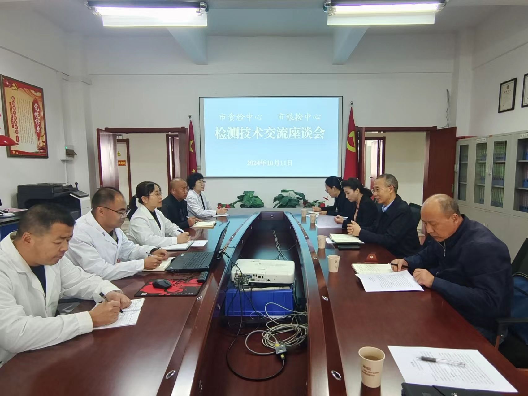 毛焕军一行先后参观了市粮油防治检验中心样品室、仪器分析室,重点了解了液相色谱仪、气相色谱仪等仪器设备使用情况。座谈会上,两家单位负责人相互介绍检验人员构成、仪器设备配备、资质认定能力以及主要工作开展情况。会上,还就食品检验检测技术问题、实验室标准化管理问题进行了深入探讨交流。