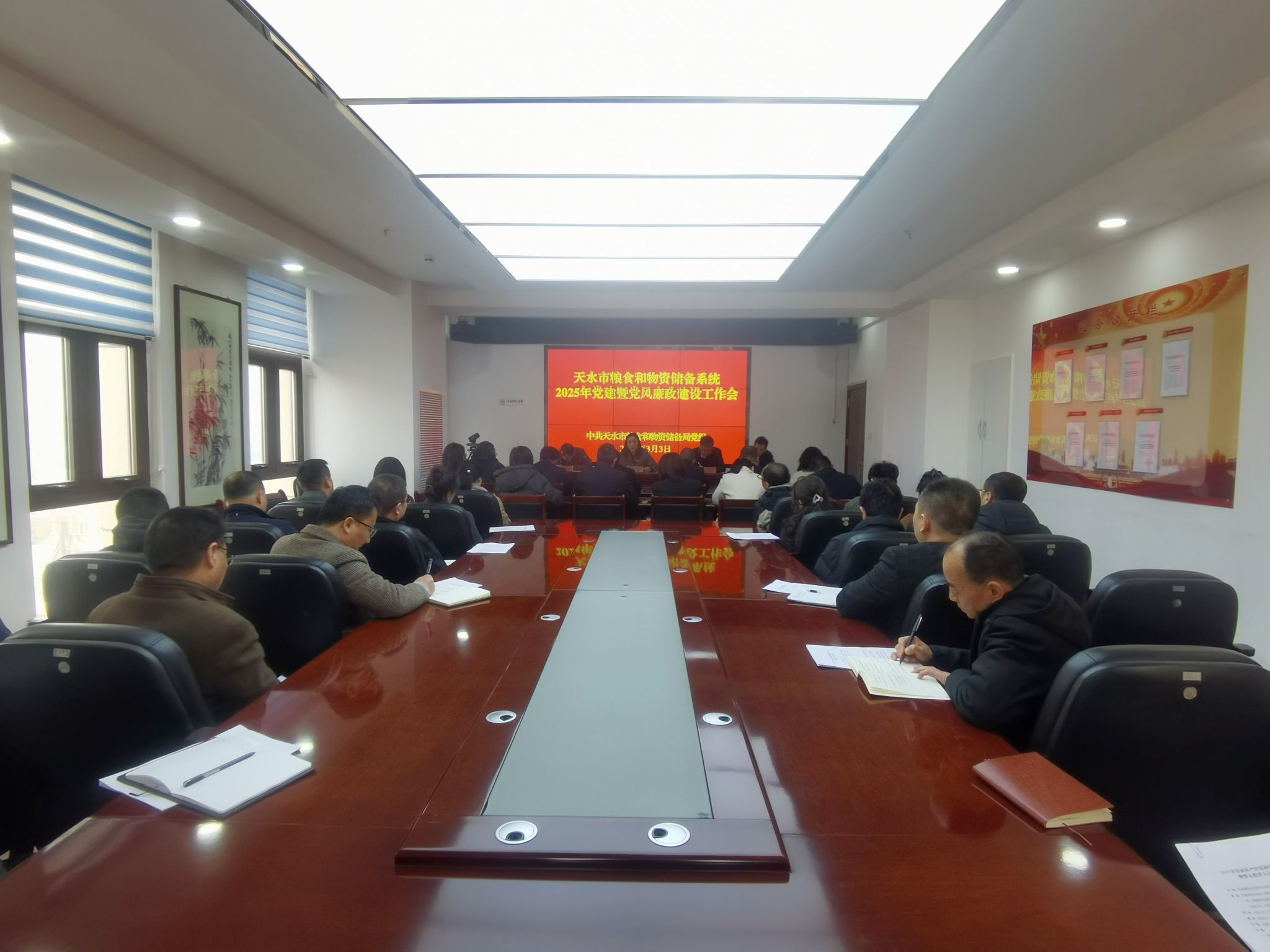 3月3日,天水市粮食和物资储备局召开全系统2025年党建暨党风廉政建设工作会。局领导班子成员,局机关、市粮食和物资保障中心全体党员干部,市粮油防治检验中心、市救灾物资储备中心负责人以及市第一粮库有限公司、市军粮供应有限公司中层及以上党员干部参加会议。