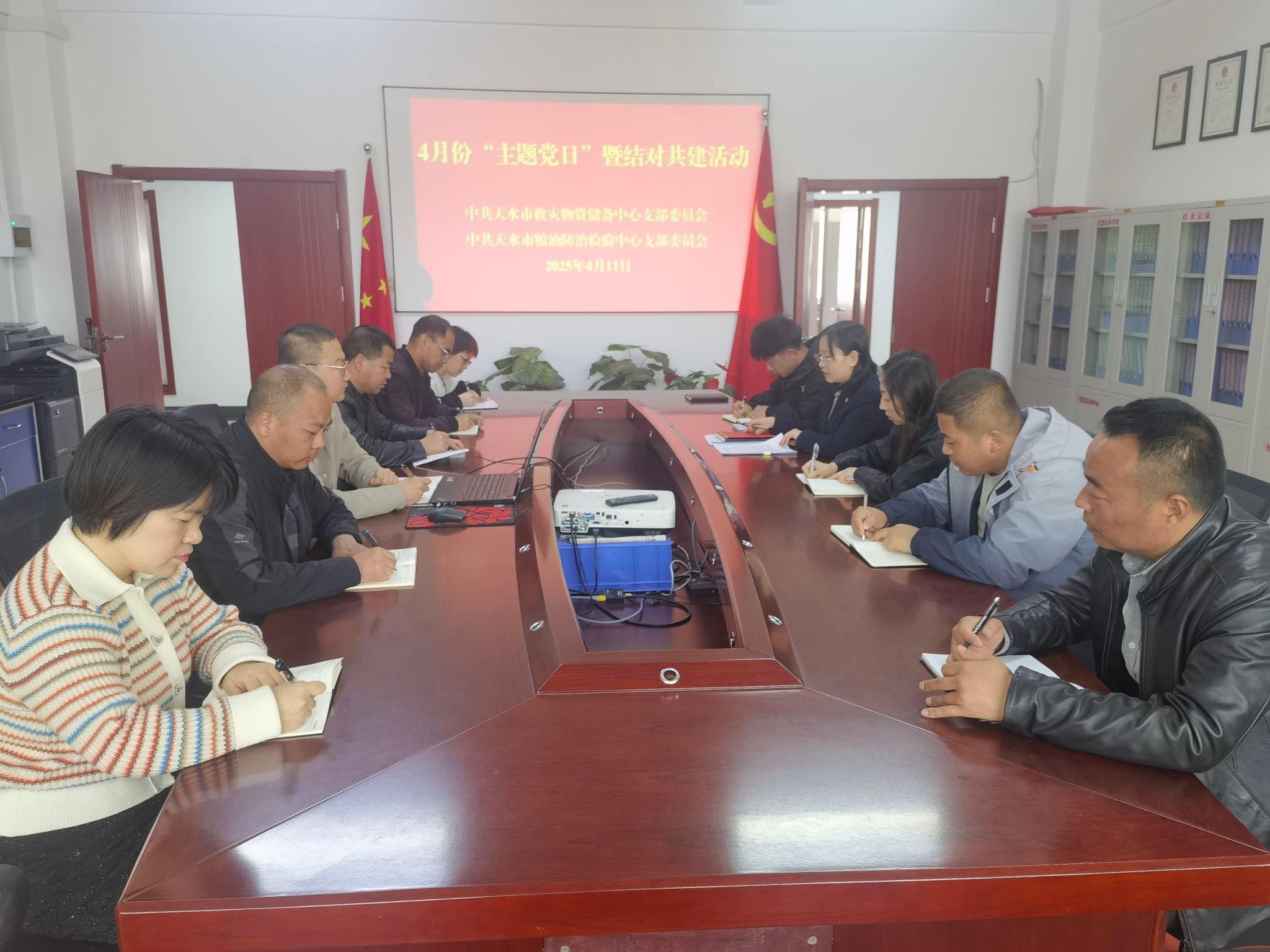 4月11日,市救灾物资储备中心党支部与市粮油防治检验中心党支部联合开展4月“主题党日”活动。