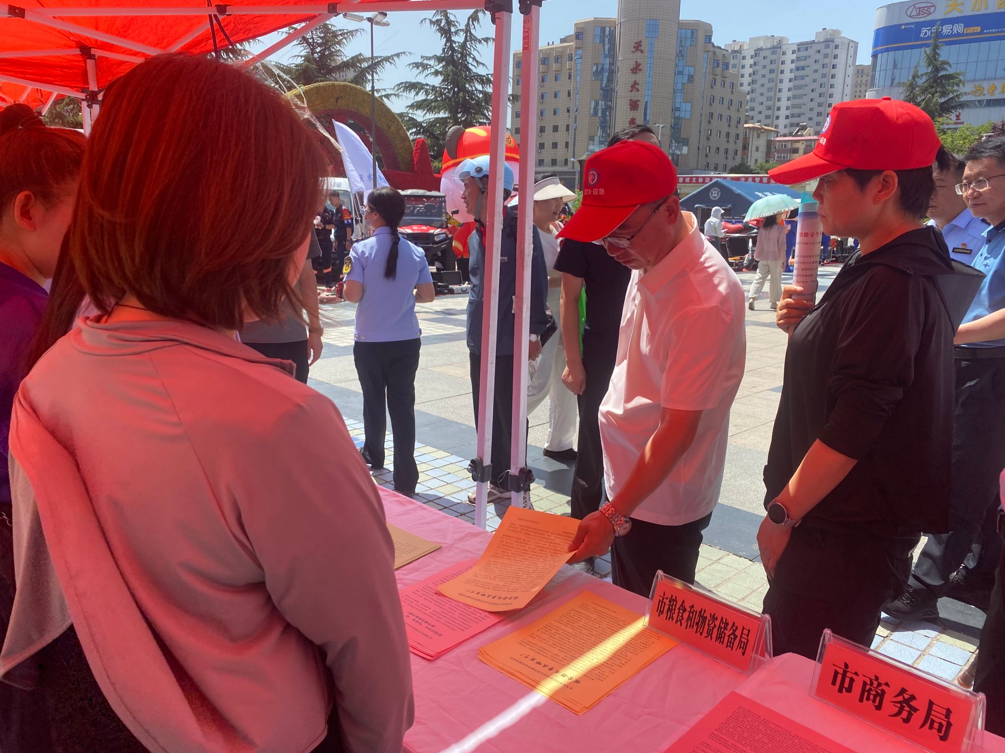 在全国第24个“安全生产月”期间,天水市粮食和物资储备局紧扣“人人讲安全、个个会应急--查找身边安全隐患”主题,在天水市龙城广场积极参与“6.16安全宣传咨询日”活动,全力营造安全生产浓厚氛围。