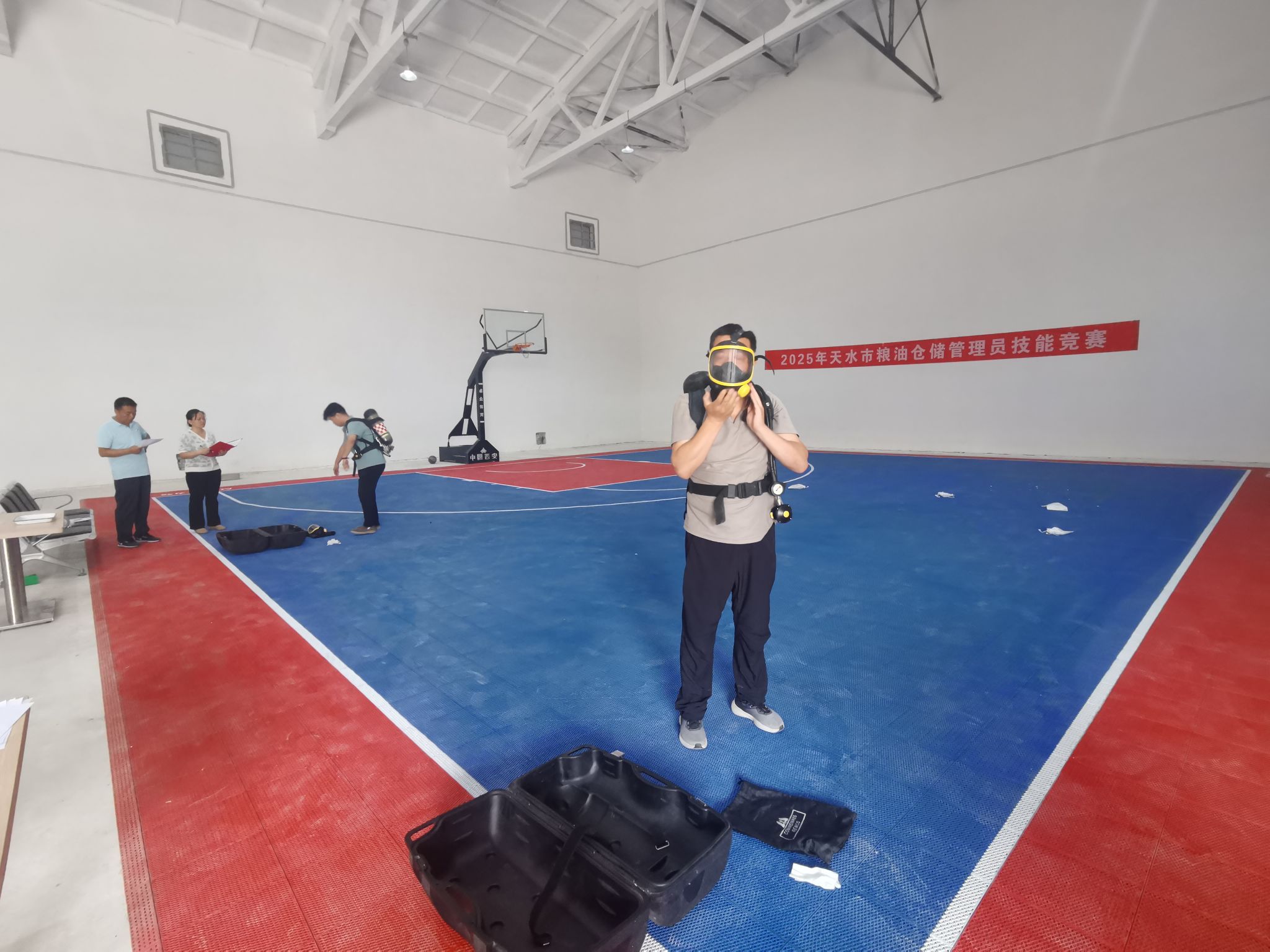 本次竞赛吸引了来自天水市各县区国有粮食企业以及市直相关单位的20余名优秀选手参与角逐。竞赛内容丰富且全面,涵盖理论知识、实操技能以及安全生产管理技能等多个关键领域。理论知识考核环节,着重考查选手对粮食行业法规制度、粮油储藏技术规范等内容的理解与掌握程度;实操技能部分,设置了佩戴正压式空气呼吸器检查熏蒸杀虫效果,感官鉴别小麦容重、杂质及水分,识别常见储粮害虫等多个项目,全面检验选手在实际工作中的动手能力;安全生产管理技能竞赛则通过安全知识竞赛、应急技能实操竞赛、观看安全生产视频查违章等方式,强化选手的安全责任意识,提升应急处置能力。