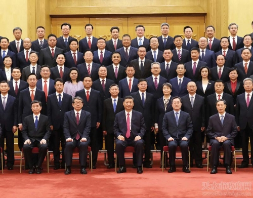 上午11时30分,习近平等来到人民大会堂东大厅,全场响起热烈掌声。习近平等走到受表彰的优秀县委书记中间,同大家亲切交流并合影留念。
