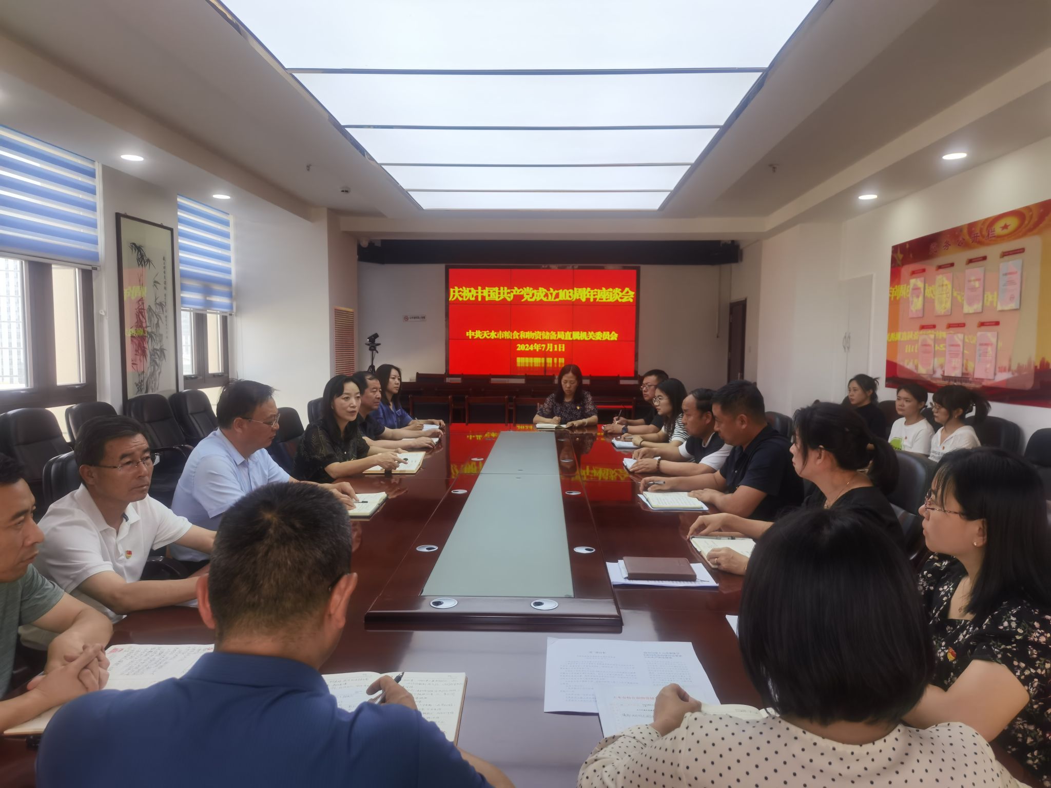 为全面贯彻落实党的二十大精神,隆重庆祝中国共产党成立103周年,“七一”前后,天水市粮食和物资储备局组织开展了系列活动,进一步激励市直粮食和物资储备系统各级党组织和广大党员干部不忘初心、牢记使命,真抓实干、砥砺奋进,为推动全市粮食和物资储备工作高质量发展作出更大贡献。
