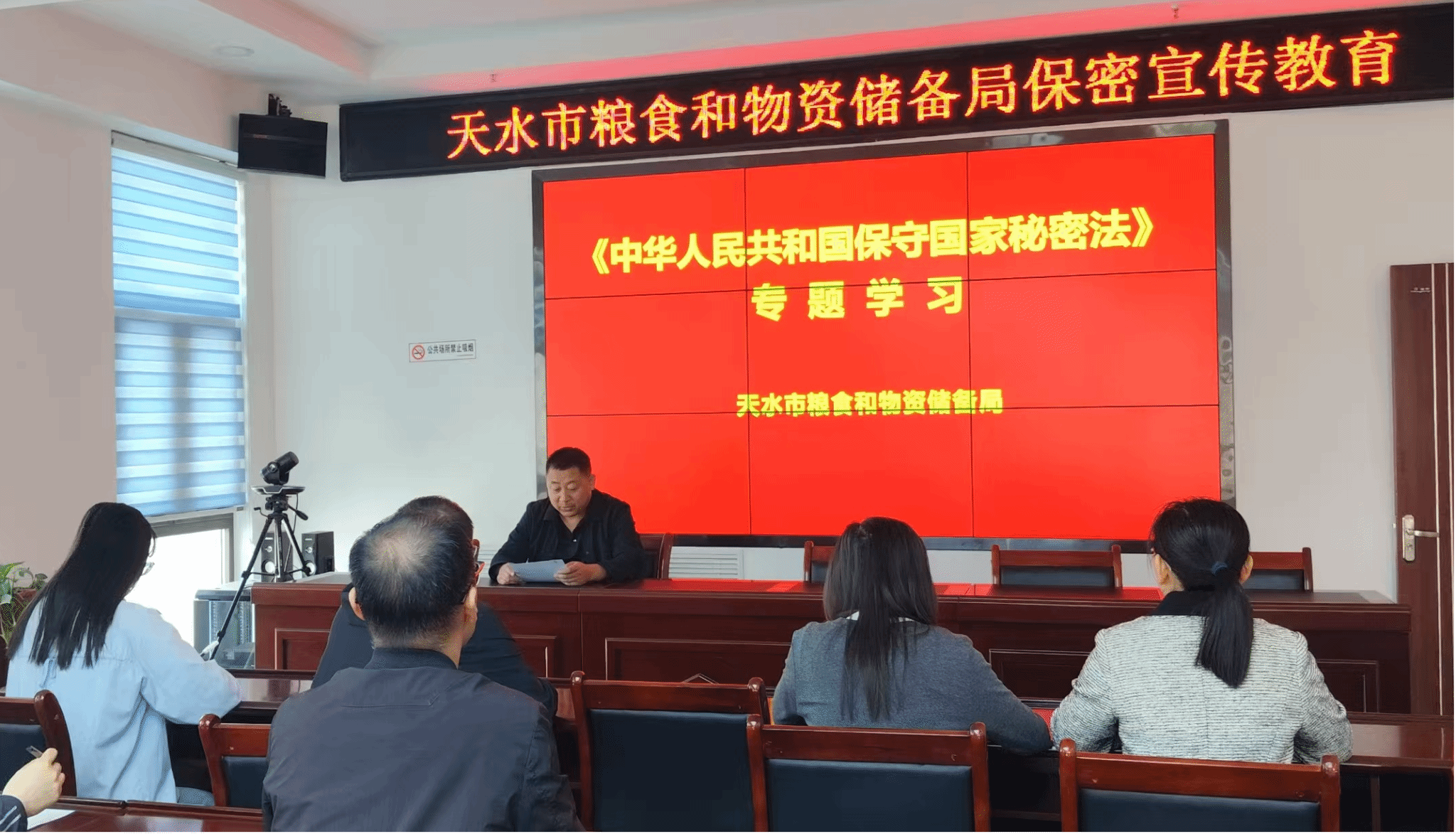 为深入贯彻总体国家安全观,进一步夯实保密工作基础,切实增强干部职工保密意识和责任意识,提高保密工作水平,5月12日,天水市粮食和物资储备局组织开展保密工作专题教育培训。