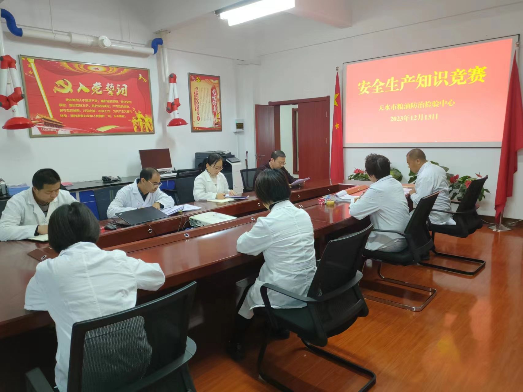 为深入贯彻落实习近平总书记关于安全生产重要指示,学习省、市安全生产推进会会议精神,按照局党组“安全生产创建月”实施方案的要求,做好我市粮食质量安全监管工作,天水市粮油防治检验中心立足工作实际,精心组织,周密部署,开展了隐患排查安全生产创建月活动。通过案例学习、现场演练等方式,切实提高干部职工安全意识和安全生产能力,确保粮油防治检验工作安全平稳运行。