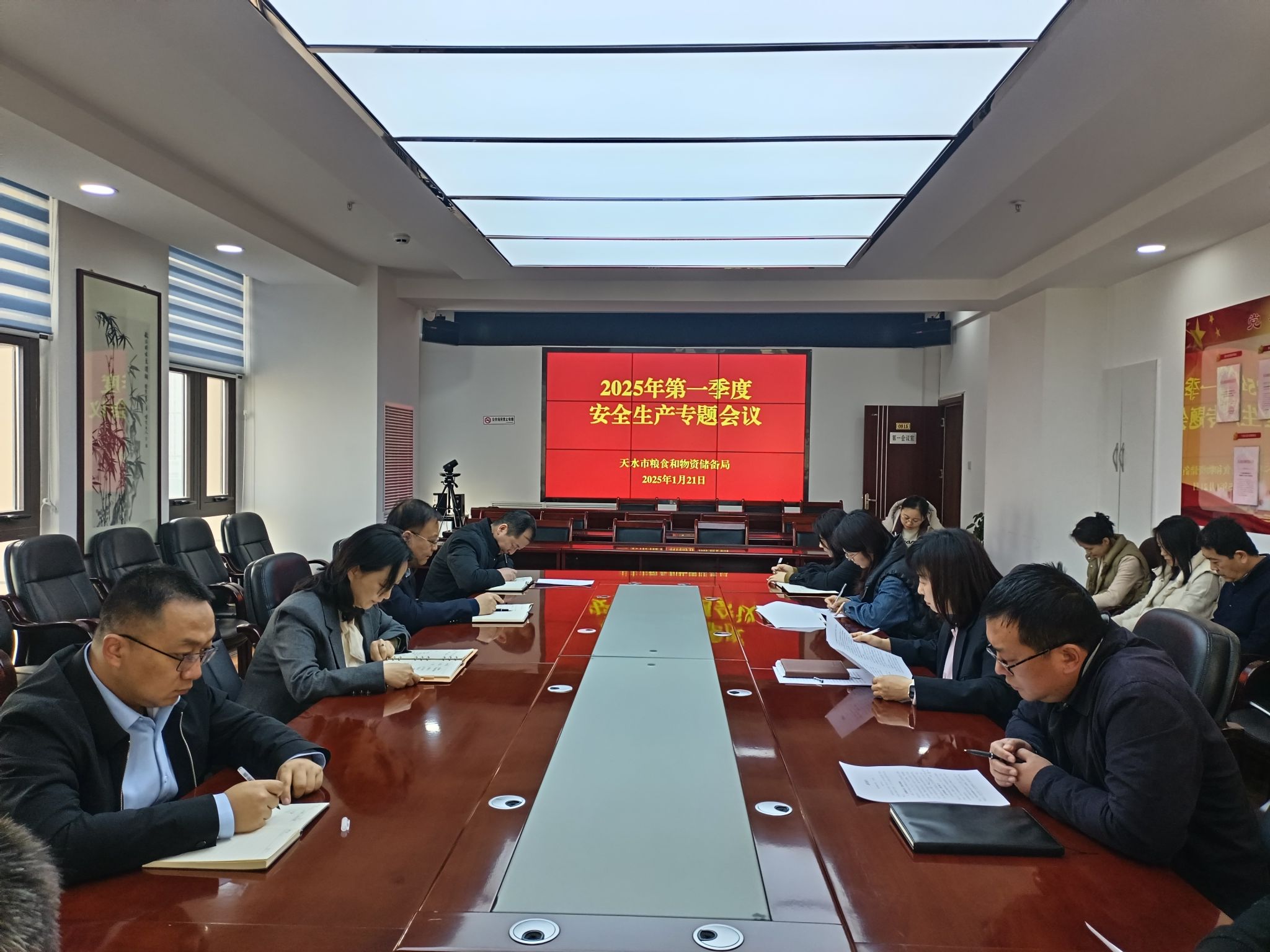 为切实做好春节期间安全生产工作,坚决杜绝各类安全事故发生,近日天水市粮食和物资储备局组织召开全市粮食和物资储备系统春节期间暨第一季度安全生产工作专题会议。会议组织学习了习近平总书记关于安全生产防灾减灾救灾重要指示批示精神,传达了2024年全市安全生产工作情况通报和2025年全市安全生产工作会议暨市安委会第一次全体(扩大)会议精神,分析研判了全市粮食和物资储备行业面临的安全生产形势,安排部署了当前重点工作。局主要负责人主持会议并提出工作要求,局机关各科室、局属各单位负责人参加会议。