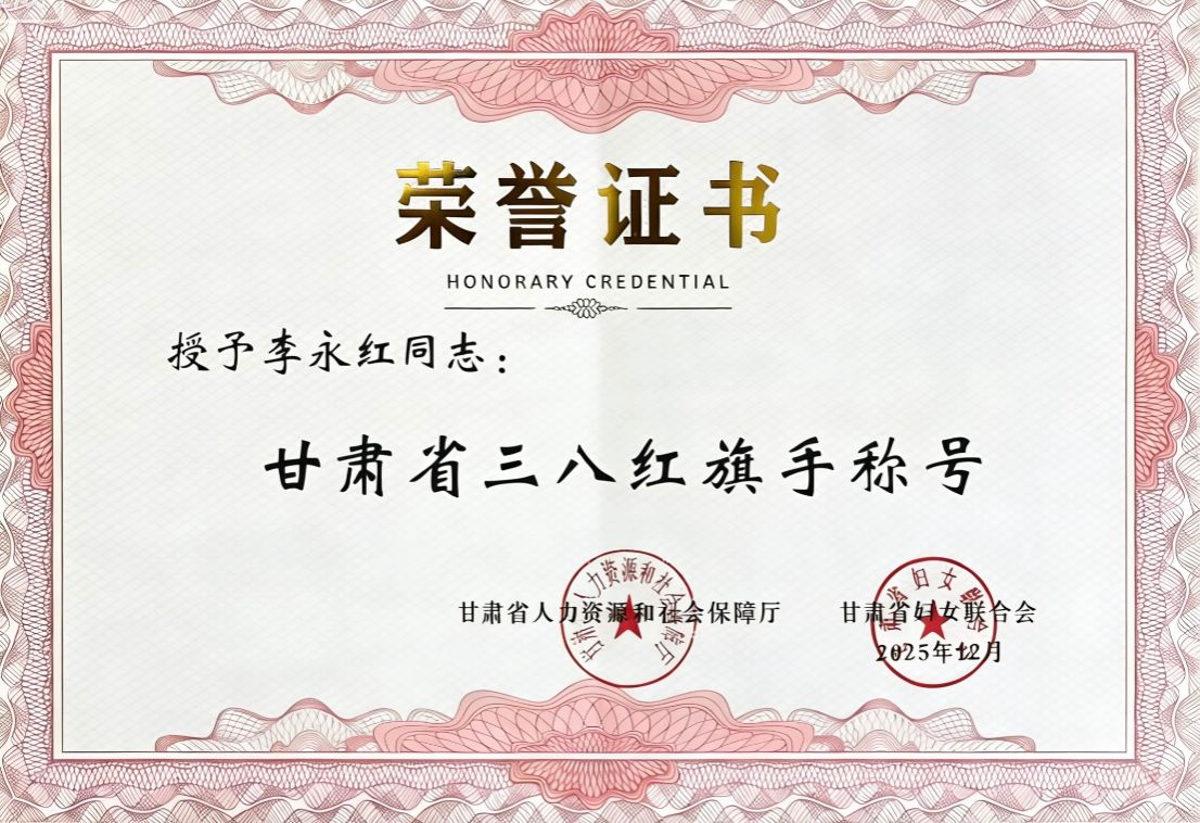 近日,甘肃省人社厅、甘肃省妇联发布《关于表彰甘肃省三八红旗手(集体)、甘肃省巾帼文明岗的决定》,天水市粮食和物资储备局物资储备科科长李永红同志荣获全省“三八红旗手”荣誉称号。
