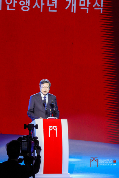 3月27日,2019“东亚文化之都”西安活动年在西安古城墙永宁门瓮城拉开帷幕。文化和旅游部副部长张旭,陕西省副省长胡明朗,西安市委副书记、市长李明远等出席。2019“东亚文化之都”日韩两国当选城市韩国仁川市副市长许琮植、日本东京都丰岛区区长高野之夫、历届中国“东亚文化之都”城市代表、各驻陕总领馆代表,以及西安文艺界、旅游业等各界代表500名中外嘉宾出席开幕式。