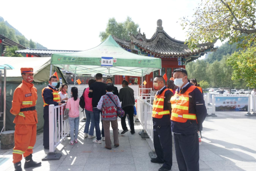 “景区氛围浓、旅游秩序好、服务优质暖人心”来到麦积山大景区的游客纷纷给出了自己的评价。国庆第一天,为了保障旅游小高峰的交通顺畅,解决车辆拥堵问题,景区外,交警、公交公司,在通往麦积山景区道路沿线的麦积镇贾河路口、峡门游客中心停车场、甘泉镇元店路口设立三级分流劝导站,启用游客中心临时停车场,采取分时、分段限制车流,科学控制高峰期通往景区主干道交通流量,引导游客车辆向温泉、仙人崖、净土寺景区合理分流,分摊单位时间客流量,避免客流集中和拥堵,提升游客的观光体验。景区内,公安、交警、森林消防、医疗、运管等各部门各司其职,管秩序,保畅通,守安全,全力保障游客的平安出行。