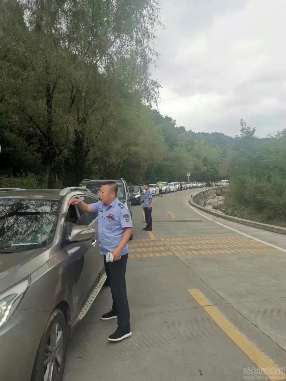 上午九时,麦积山景区停车场已全部停满。为确保游览秩序安全有序,景区立即启动应急预案,新建麦积山游客中心充分发挥游客中转服务功能,游客中心停车场开始分流游客车辆,引导游客合理分流,新建游客中心全天停放车辆2200辆,中转游客7500多人,景区管委会与交警、公交公司密切配合,科学组织,合理调动,通往景区交通要道秩序井然,景区客流上下有序,保持了良好的旅游秩序和游览舒适度。