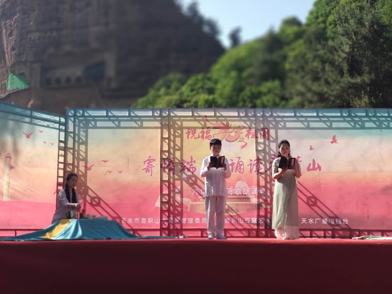 为庆祝新中国成立70周年,喜迎端午佳节,感悟诗意生活,大力弘扬中华传统优秀文化,培养爱国情怀,彰显传统节日独特魅力和深厚内涵,不断丰富广大人民群众精神文化生活。6月1日下午在麦积山景区,麦积山大景区管理委员会、天水广播电视台联合举办了“寄情端午,诵读麦积山”大型少儿诗歌朗诵会。