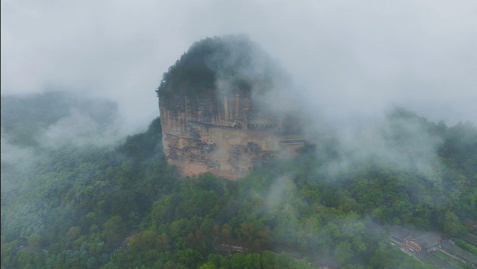 “麦积烟雨”,一个充满诗情画意的名字,让来自四面八方的游客无限神往。伴随着阵阵秋风,云雾升腾起伏,络绎不绝的游客登临石窟栈道,穿云而过,好似走进了一幅流动的水墨画卷。 雨雾丝毫没有阻挡游人欢快的脚步,远处烟雨中隐约的巍峨山峰和近处千姿百态的奇松,都令登山游客赞叹不已,打卡、拍照,欢乐的记录下旅途的美好时刻。