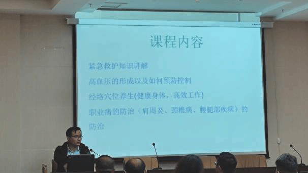 此次培训,刘玮老师从紧急救护知识、高血压的形成以及如何预防控制、经络穴位养生、职业病的防治等四个方面展开详细生动的讲解。刘老师用图文并茂的形式和风趣幽默的语言,以案例分析结合现场教学示范的方式,生动详细地开展了健康知识培训。刘玮老师针对景区工作实际,通过日常工作生活中常见的突发疾病的案例,为大家讲解应急救治的处理方法,并邀请参会职工亲身体验缺血预适应训练、心肺复苏等。特别是针对肩周炎、颈椎病、腰腿部疾病等三大职业疾病的预防和治疗、日常自我解压调理等方面的知识进行了教学。大家通过互动学习,在欢笑中了解掌握了相关健康知识和预防技巧。