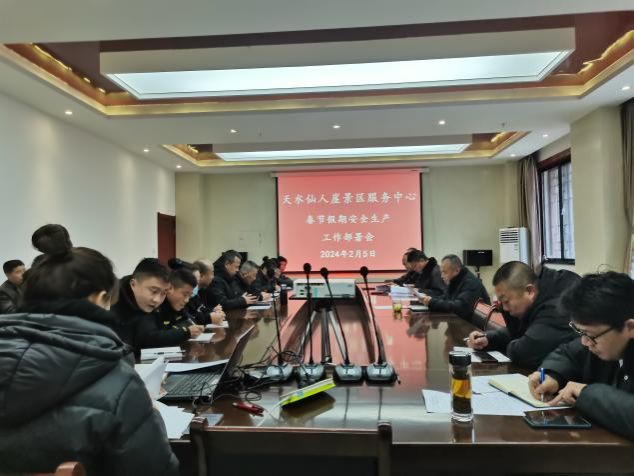 为切实落实各级各部门安全会议精神,守牢景区安全底线,2月5日仙人崖景区服务中心组织召开了节前安全生产、文物保护、护林防火、旅游接待方面的工作安排部署会,会上,管委会领导系统传达了习近平总书记关于安全生产的重要指示批示精神,领学了中央、省市应急管理和消防安全部门相关指导文件要求。会议重点就做好春节期间旅游安全工作作出精细部署,一要高度重视春节期间应急值班值守工作,严格落实信息报告和突发事件应急响应制度,严肃值班纪律,带班和值班人员要24小时坚守岗位,确保联络畅通、各项工作正常运转;二是要持续夯实各岗位各班组的安全责任,始终绷紧安全弦,加强节日期间隐患排查治理,严格落实各项安全措施,及时消除安全隐患,切实为游客保障欢度平安祥和的新春假期。