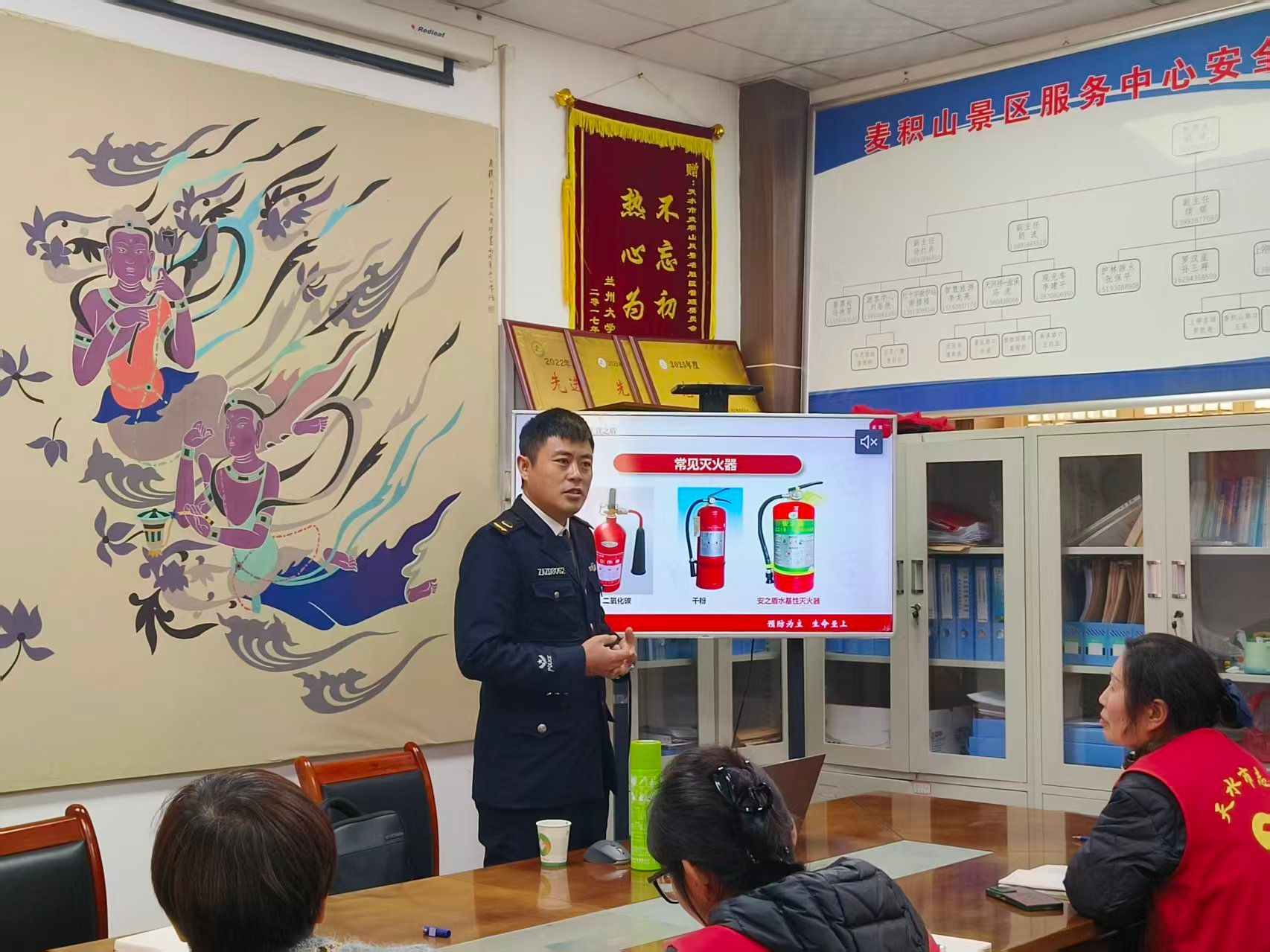 清明假期临近,气温回升,祭祀用火、游客吸烟等火灾风险因素叠加,为全面提升景区火灾防控能力,筑牢消防安全防线,3月27日,麦积山景区服务中心联合综合执法局、文旅公司、达宇公司等部门,组织开展2026年清明节前消防安全知识培训及实操演练。