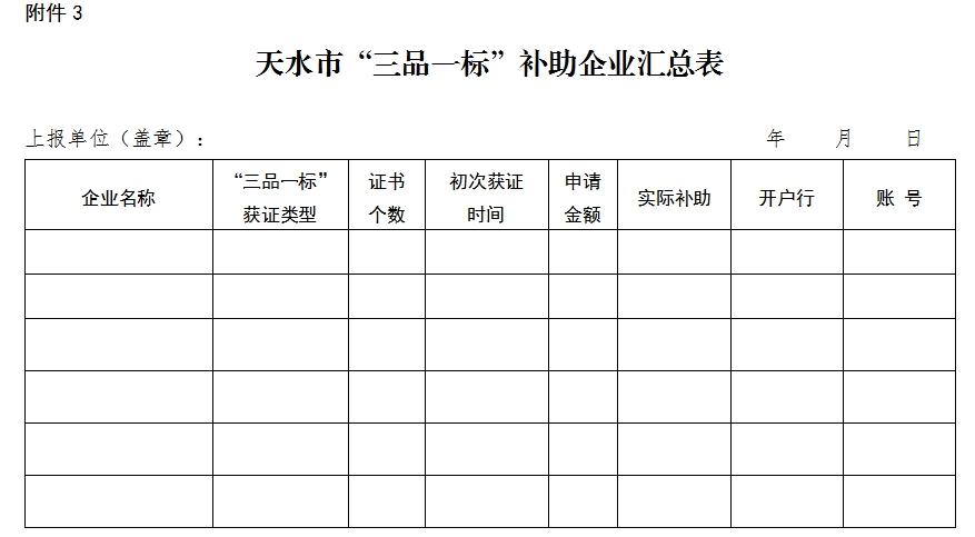 2、天水市“三品一标”认证奖励申请表
