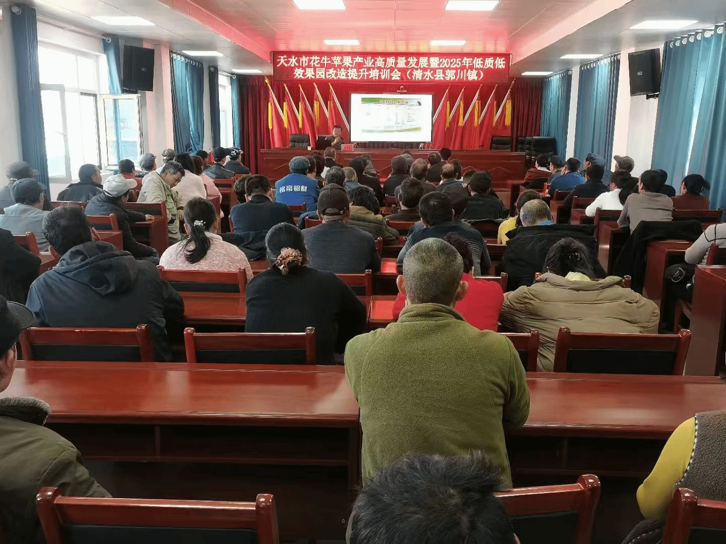 按照“早部署、广动员、强落实”原则,从去年冬季以来,天水市就将以花牛苹果为主的果园管理作为农业工作的重中之重,构建了市、县、乡、村四级联动机制,市县农业农村部门明确工作任务、时间节点和责任分工,通过召开动员会、现场推进会、县乡干部及技术骨干走进田间地头等形式,向果农、合作社、龙头企业负责人宣传春季果园管理技术和果园改造提升奖补扶持政策,2月19日在甘谷县召开了全市花牛苹果产业高质量发展暨2025年低质低效果园改造提升启动会,全面营造“人人参与、户户行动”的浓厚氛围。