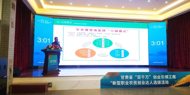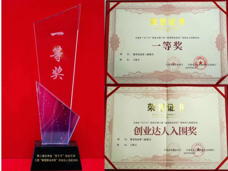 近期,由省农业农村厅、省人力资源和社会保障厅主办的甘肃省“百千万”创业引领工程“新型职业农民”创业达人选拔活动圆满落幕。大赛共评选出一等奖1名、二等奖2名、三等奖3名、优秀奖10名、“创业标兵”奖8名。其中,我局选送的甘肃像山融创科技发展有限公司王焕文参赛的“撂荒地复耕三融模式”项目荣获大赛一等奖,同时获得“创业达人”入围奖。