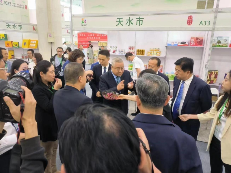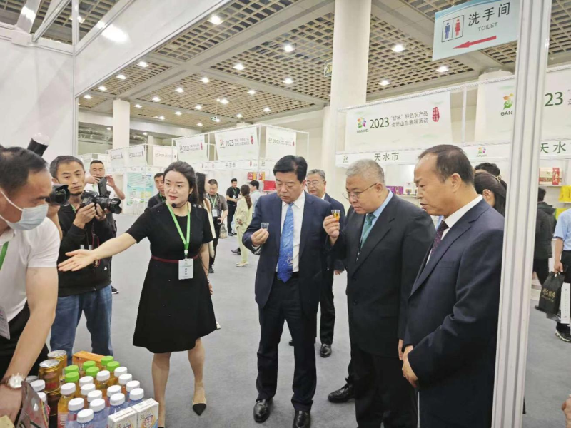 5月23日至28日,甘肃省农业农村厅主办的“甘味”特色农产品走进山东展销活动和食品加工产业链招商引资洽谈会(简称“展销活动”)在山东省济南舜耕国际会展中心举办,山东省农业农村部门及山东农业企业代表430多人应邀参加。天水市组织天水长城果汁集团有限公司等9家新型农业经营主体参展。甘肃省委农办主任,省农业农村厅党组书记、厅长杨金泉巡察天水展区并听取了相关介绍,对天水特色农产品和食品加工产业发展取得的成效给予充分肯定。