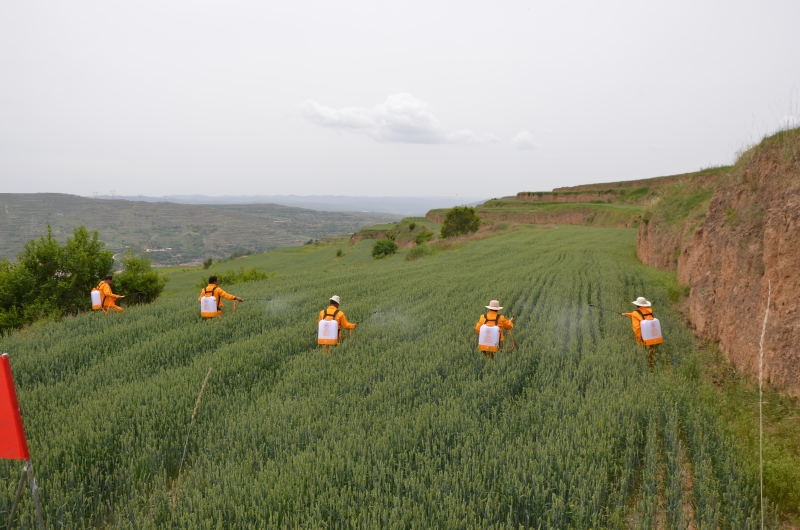三是突出防早防小,防治关口前移。按照“早谋划、早准备、早预警、早防治”的要求,坚持突出重点、早防早治的原则,春季做到“带药侦查,发现一点,控制一片”,对零星发生田块进行“挑治”,有效降低菌源量和虫口基数。召开防控现场推进会,大力实施“一喷三防”措施,对小麦条锈病、白粉病、蚜虫为主的病虫害全面开展防治。组织专业防治队、植保无人机等,对条锈病、白粉病、麦红蜘蛛等病虫重发区域集中开展统防统治,发动群众群防群治。全市累计组织召开现场会22场(次),发放杀菌剂杀虫剂68.25吨,叶面肥64.21吨,生长调节剂11.47吨。