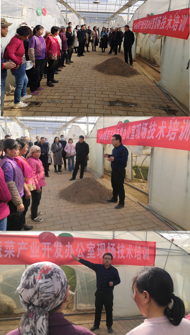 在蔬菜集约化育苗中心,技术专家组详细查看了樱桃番茄釜山88苗子生长和航椒4号辣椒出苗情况,指出了当前育苗管理过程中存在番茄苗生长较弱、育苗盘未与土壤隔离、辣椒苗床水分不足等问题,并对如何提升种苗质量提出了加强苗子光照管理、防止辣椒出苗猝倒病发生等针对性的意见建议。随后组织合作社负责人、温室育苗技术人员等30多人就如何做好冬季温室管理、蔬菜标准化育苗等关键技术进行了现场培训,深入讲解了蔬菜秧苗温湿度、水肥、光照和病虫害管理技术要点,防止辣椒带壳出苗方法,提醒农户做好番茄苗子定植前的炼苗,不断提升蔬菜种苗质量,为全年蔬菜生产奠定基础。