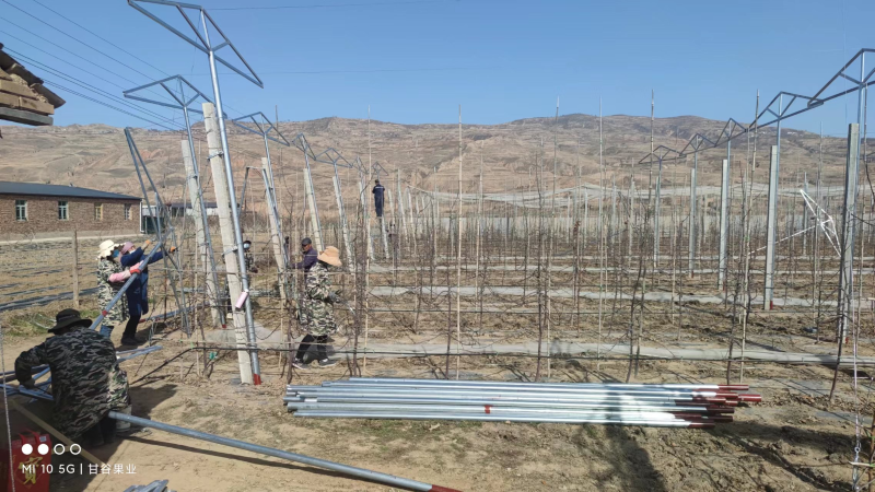 二、入户入园,加强宣传动员。果园防雹网建设成本高、技术要求严,许多合作社、果农长期对冰雹、冻害等灾害天气心存侥幸,一旦发生灾害又后悔莫及。为此,市、县(区)农业农村局组织技术干部深入田间地头,并充分利用微信群、广播、新闻媒体等,采取广泛宣传引导和行政推动相结合的方式,为合作社、果农宣传果园防灾减灾设施建设的必要性、重要性、迫切性和奖补政策,从思想上消除了群众顾虑情绪,极大地提高了开展防灾减灾设施建设的积极性。