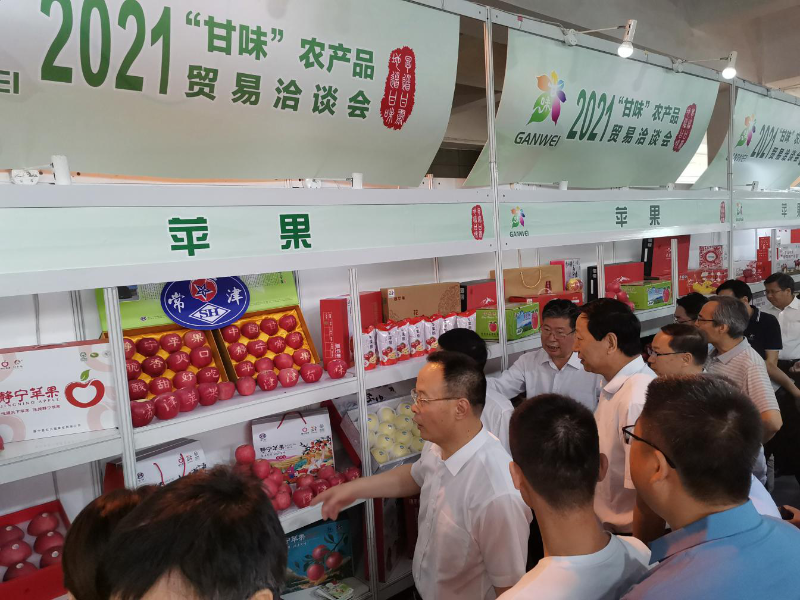 7月27日,2021“甘味”特色农产品贸易洽谈会暨“甘味”农产品品牌建设高端论坛在兰州举行。市政府副秘书长邵宏伟带领市农业农村局负责同志和16家农业企业代表参展,展示“花牛苹果”等我市“甘味”农产品50多种。