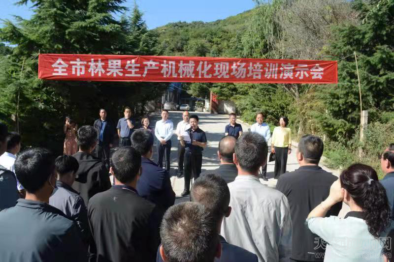 为深化党史学习教育,做实做细“我为群众办实事活动”,进一步推动全市林果业机械化生产步伐,提高林果业机械化生产水平,促进全市林果产业节本增效,2021年9月9日,由天水市农业农村局主办,天水市农机化技术推广站承办的全市林果生产机械化现场培训演示会在天水市果树研究所举行。