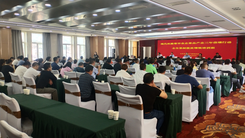 6月9日—10日,市农业农村局组织举办了“现代丝路寒旱农业果品产业三年倍增行动全市果园提质增效技术培训班”。市县区果业部门技术干部,全市重点果品产区果农技师、果农大户、合作社、种植企业技术骨干等120多人参加了培训。