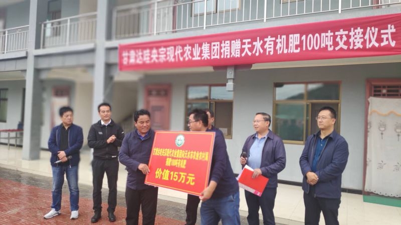 甘肃达哇央宗现代农业集团向天水果品种植基地捐赠有机肥100吨,在天水建立示范点进行试验示范。9月1日捐赠交接仪式在天水吴源农艺有限公司果品基地举行。