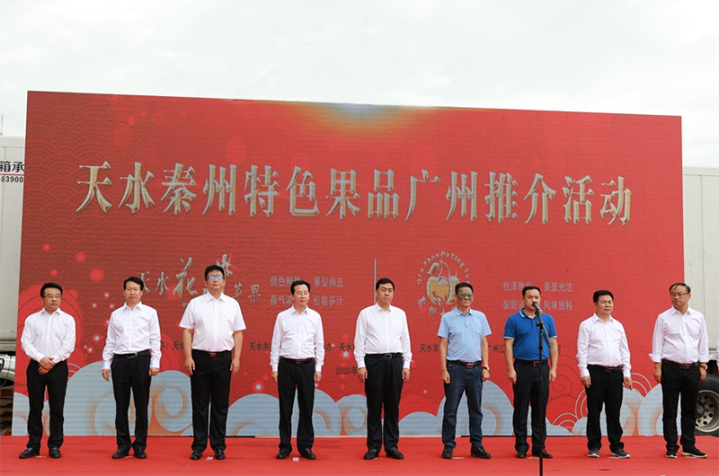金秋送爽,丹桂飘香。10月14日,我市在“羊城”广州举行2020年特色果品推介及促销活动,市政府副市长逯克宗,广州江南果菜批发市场经营管理有限公司水果部副总经理林国勋,秦州区委副书记、区长孟晓龙,广州江南果菜批发市场经营管理有限公司副总经理赖勇金,秦州区政府副区长张维有出席启动仪式。
