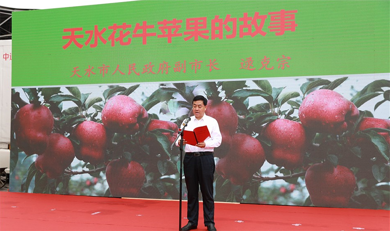 市政府副市长逯克宗在讲话时说:天水是国家历史文化名城、中国优秀旅游城市、关中平原城市群次核心城市、甘肃省域副中心城市,也是亚洲最大的元帅系苹果——花牛苹果的故乡、国内西部最佳果品蔬菜生产区之一、中国西部航天育种基地、全国首批十大循环农业示范市。