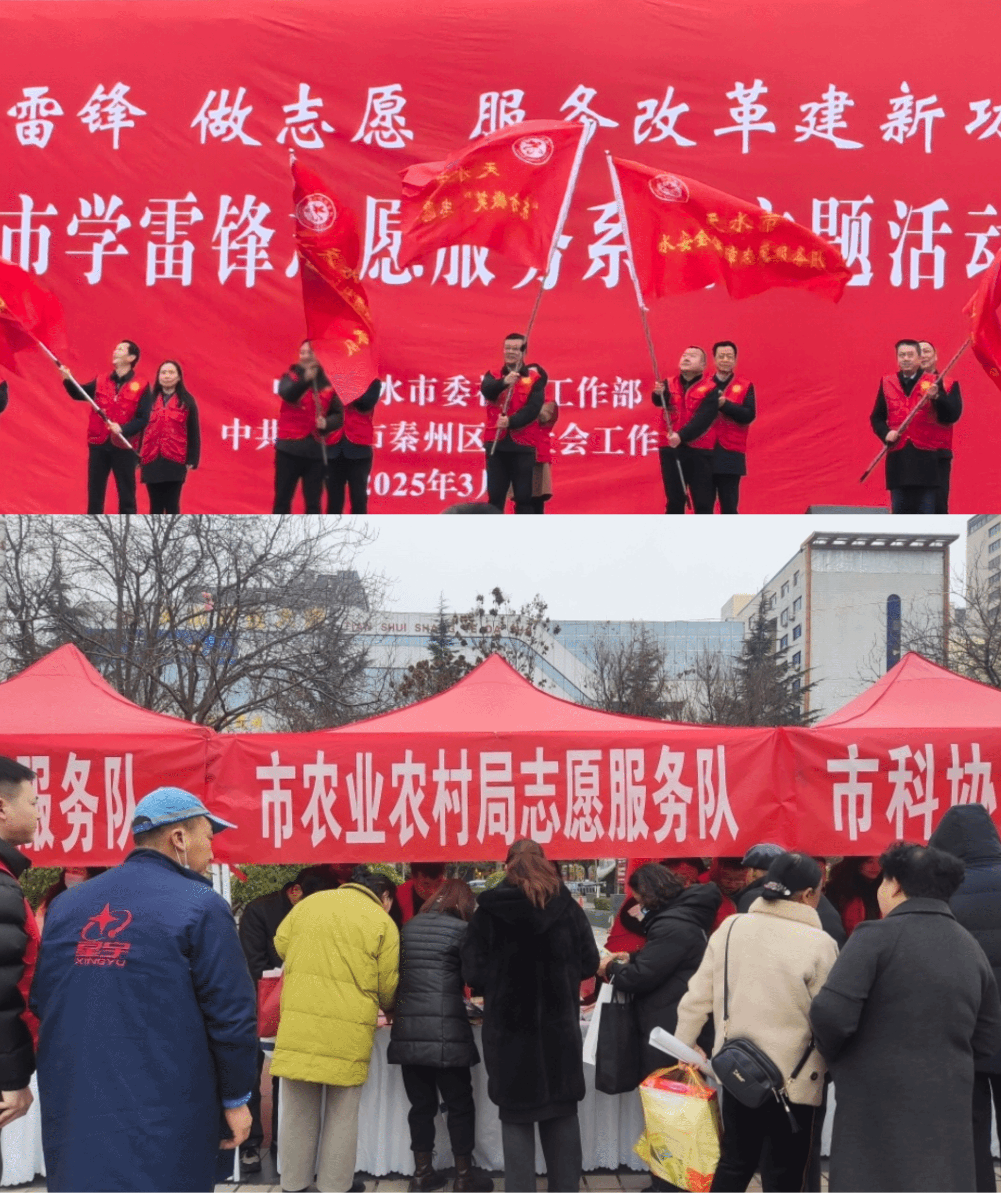 3月5日,2025年天水市学雷锋志愿服务系列主题活动在龙城广场正式启动,活动持续一个月时间。为深入推进学雷锋志愿服务活动,市农业农村局成立了“花牛红”科技助农服务队,启动当天现场发放苹果优质高效栽培技术、农作物种子条例、农用薄膜管理办法等宣传资料600余份,解答群众咨询200余人次,通过主动讲解、发放宣传资料、现场答疑解惑等方式,为广大群众普及农业技术知识。