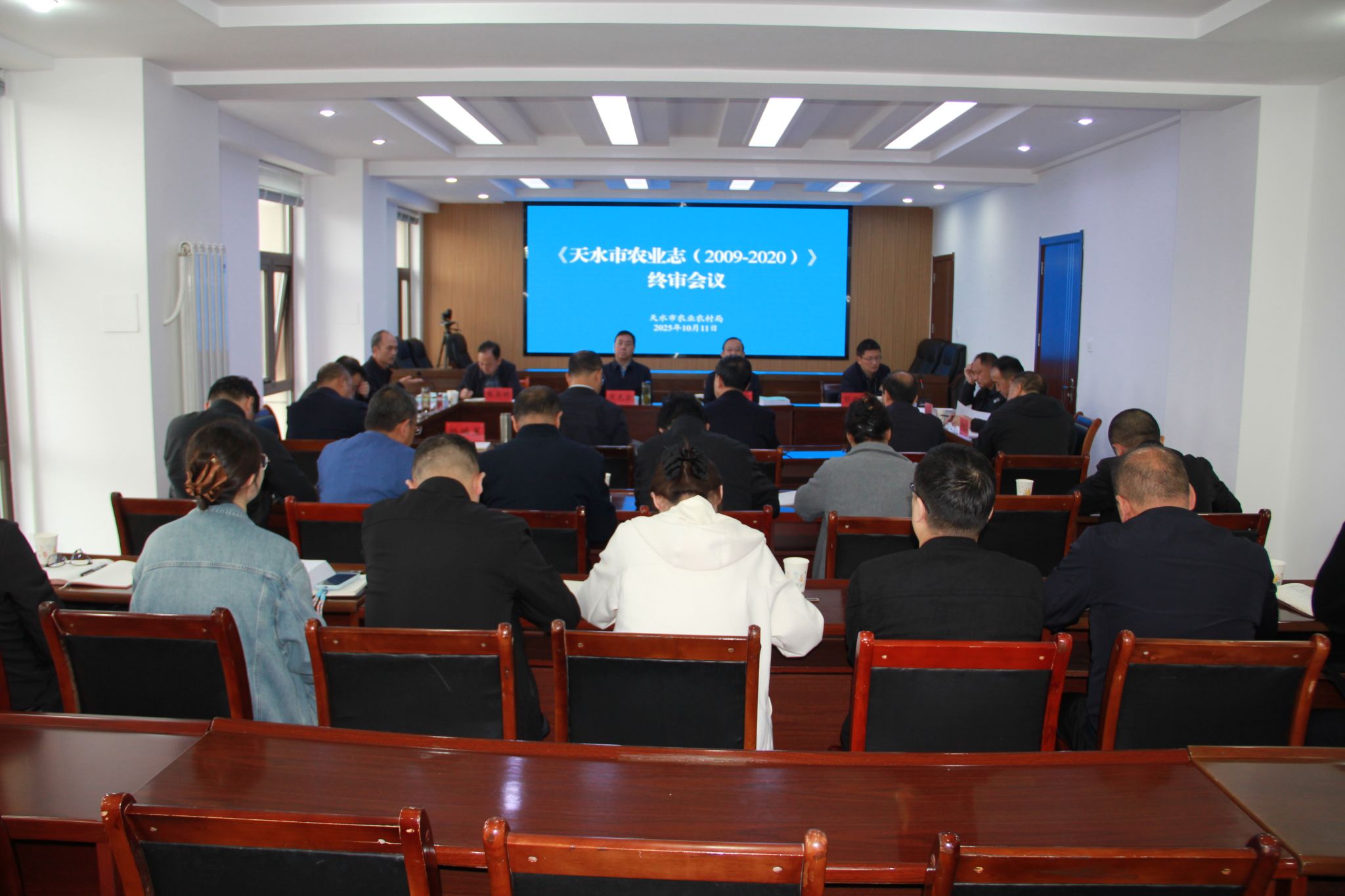 10月11日,市农业农村局组织召开了《天水市农业志(2009—2020)》终审会议,市政府副秘书长张具明主持会议,市党史和地方志审稿委员会顾问、市政府原副市长逯克宗、市政协原副主席王振宇出席。市委党史和地方志研究室、市委党校、市水务局、市畜牧兽医局等审稿组成员,市农业农村局领导班子成员、相关科室及局属单位负责人、编辑部成员参会。