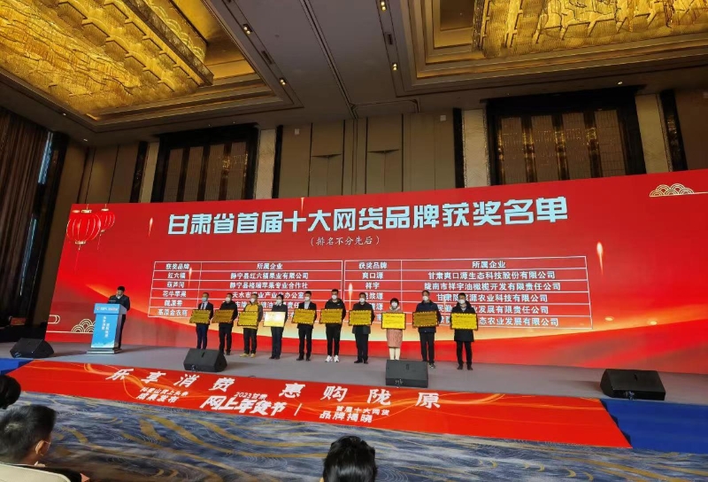 10月29日,由甘肃省商务厅主办,甘肃省电子商务协会承办的甘肃省“2023网上年货节”活动正式启动,活动现场宣布甘肃省首届“十大网货品牌”评选结果,并现场为获奖企业颁奖,我市“花牛苹果”入选上榜,荣获甘肃省首届“十大网货品牌”荣誉称号。本届“十大网货品牌”评选活动,吸引了省内 200 余家优秀企业报名参与,经过启动宣传、报名参与、品牌初评、网络投票、品牌复评(专家评审及路演)、品牌推介及颁奖六个环节,最终我市花牛苹果杀出重围成功入选。