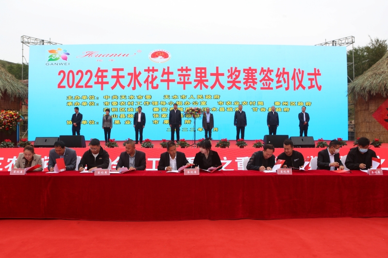 9月23日,由中共天水市委、天水市人民政府主办,市委农村工作领导小组办公室、市农业农村局、各县区人民政府承办,市果业产业化办公室、市果树研究所协办的“2022年天水花牛苹果大奖赛”在秦州区平南镇苏湾民俗庄园(苏湾村)举办。