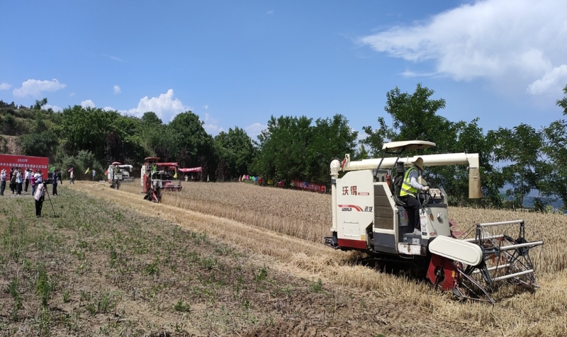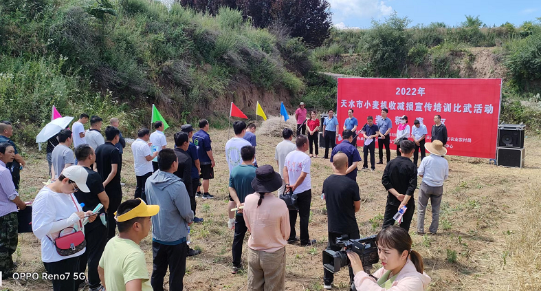 为认真贯彻落实中央和省、市“三夏”生产工作推进电视电话会议和《全省小麦机收减损大宣传大培训大比武活动实施方案》精神,进一步加大全市小麦机收宣传引导,积极落实小麦机收减损措施,努力实现夏粮丰产丰收,确保颗粒归仓。6月28日,2022年天水市小麦大宣传大培训大比武活动麦积赛区在麦积区甘泉镇云雾村开赛。市、区农业农村、农机推广、农村服务、农技等部门,麦积区小麦生产重点乡镇,天水新众辉农机销售有限公司有关同志,麦积区小麦联合收割机操作手和农户代表,市、区新闻媒体代表等130余人参加了活动。