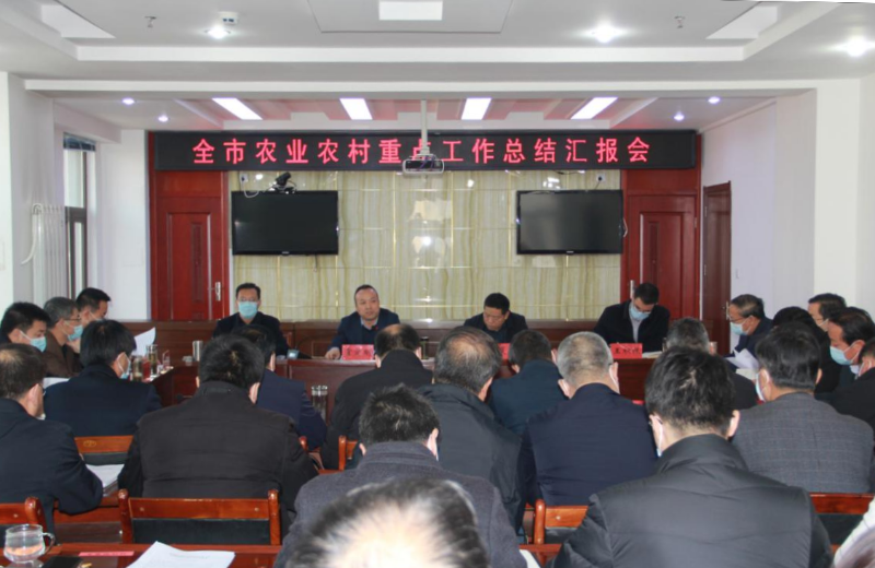 12月24日上午,全市农业农村重点工作总结汇报会议召开,会议深入学习贯彻全市第八次党代会精神,全面总结2021年全市农业农村工作,研究谋划2022年重点工作和重点项目。市农业农村局领导班子成员、各级调研员,局机关各科室、局属各单位主要负责同志,市农科所、市果树所主要负责同志,各县区农业农村局主要负责人共50余人参加会议。