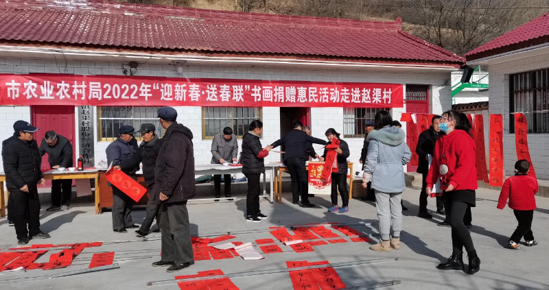 为弘扬中华民族传统文化,营造喜庆祥和的春节氛围,1月14日,天水市农业农村局邀请天水市牡丹书画院的8位书画家在清水县远门镇赵渠村开展了2022年“迎新春送温暖”书画捐赠惠民活动,为赵渠村群众送去了新春问候和祝福。市农业农村局副局长夏草,局种植业管理科、市农产品质量安全检测中心、市农业农村项目服务中心负责人及驻村第一书记等参加了书画捐赠惠民活动。