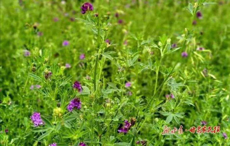 盛夏七月,在清水县黄门镇黄湾村,收割机穿梭在紫花苜蓿行间,划出一道道美丽的线条。收割后的苜蓿经过晾晒、打捆,运送到各个养殖合作社,成为牛羊的“绿色有机食品”。