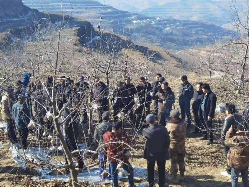 果品产业是秦安县支柱产业,其中苹果栽培面积61.37万亩,挂果面积44.7万亩,产量84.9万吨,产值23.77亿元。秦安县莲花、叶堡、王铺、魏店等地是该县苹果主产区。这次“科普之冬”宣传培训活动,市农业农村局技术人员先后到秦安县叶堡、王铺、魏店等地,采取集中讲授与现场示范相结合的方式进行培训。重点讲解了规模较大果园应用的水肥一体化技术、适宜小规模果园使用的追肥枪注射施肥技术、干旱果园应用的覆草或覆膜保墒技术、果园冬春季病虫害综合防治技术等。技术人员还现场示范了冬季整形修剪技术。