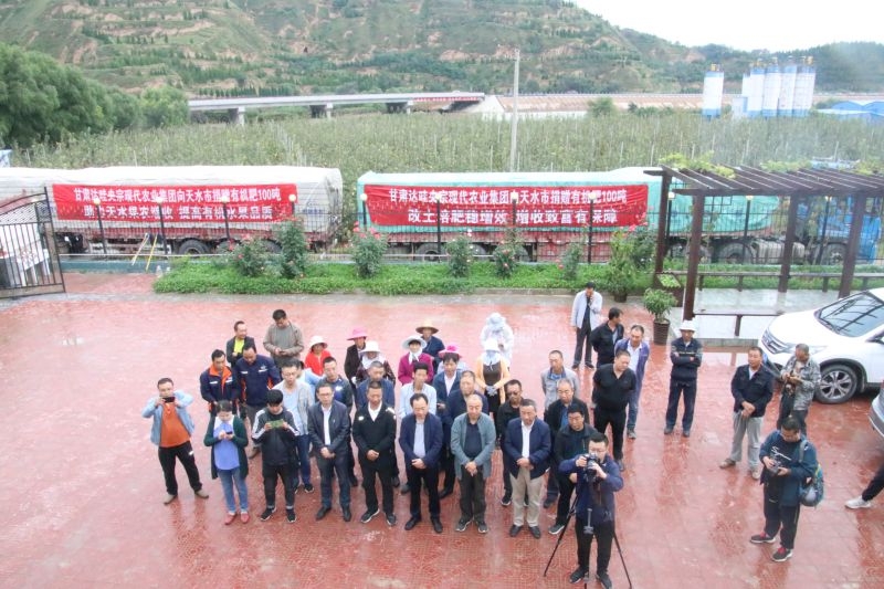 甘肃达哇央宗现代农业集团向天水果品种植基地捐赠有机肥100吨,在天水建立示范点进行试验示范。9月1日捐赠交接仪式在天水吴源农艺有限公司果品基地举行。