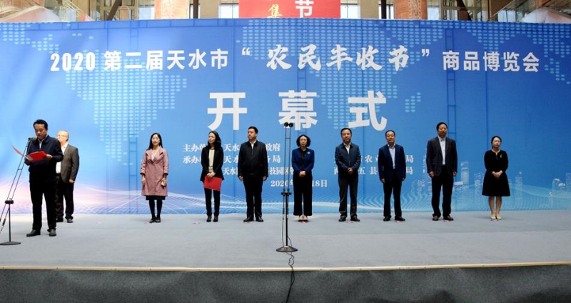市委常委、统战部部长王燕宣布2020第二届天水市“农民丰收节”商品博览会开幕。
