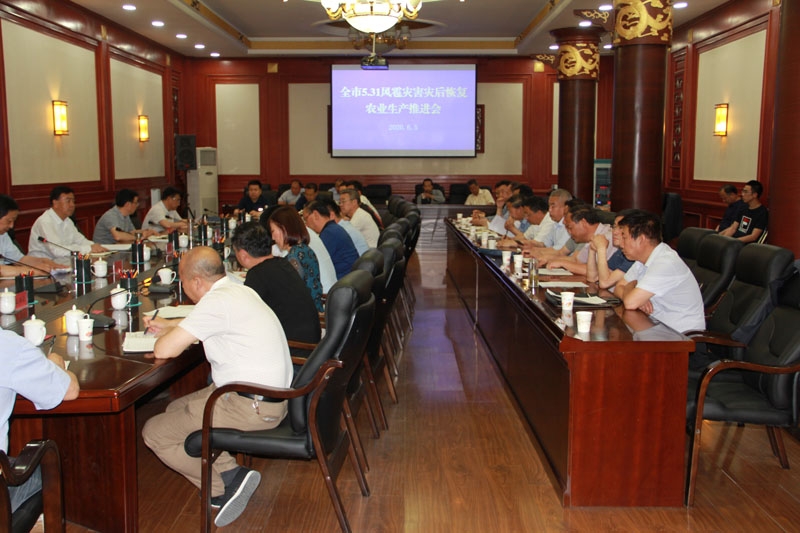 6月5日晚,天水市召开5.31风雹灾害灾后恢复农业生产推进会,传达学习省委、省政府及市委、市政府主要领导批示精神,听取灾情实地核查情况汇报,分析存在的问题和困难,安排部署下一步灾后生产恢复及防灾救灾减灾重点工作。副市长逯克宗出席会议并讲话。市政府副秘书长邵宏伟及市农业农村局、应急管理局、气象局负责人,相关县区政府分管领导及农业农村局负责人,6家农业保险经办机构负责人,市上派出的13个灾情核查和技术服务组人员参加会议。