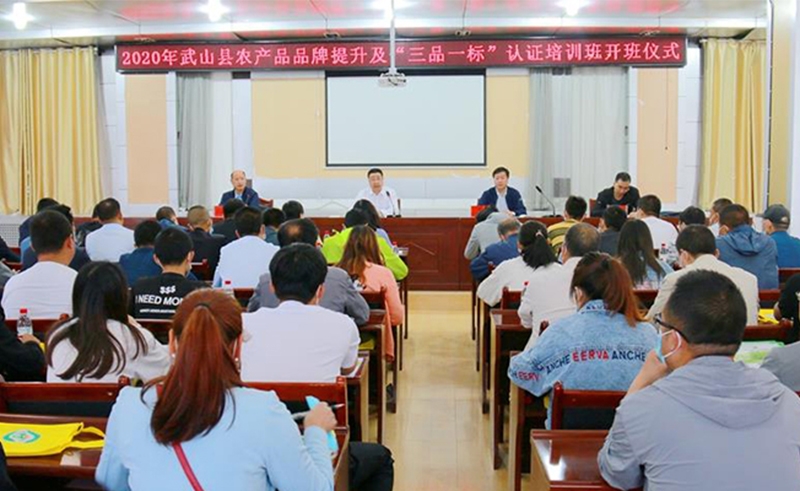 开班仪式上指出,当前武山县农业产业最大的矛盾,是标准化生产下农产品质量安全可控与千家万户分散经营下农产品质量安全不可控之间的矛盾。提出了“龙头企业+合作社+农户”的组合,对千家万户的生产基地采取托管的模式,由企业、合作社带动,将千家万户拧成一股绳,集中力量,统一标准化生产技术规程、统一开展农药残留检测、统一施行农产品质量安全追溯管理,确保优质农产品产出来,安全农产品管出来,农产品品牌树起来。一是财政扶持能从一产向二产、三产转变,支持县内龙头企业、合作社加强“三品一标”认证,积极打造省内、国内甚至国际知名品牌,提升本县农产品的市场竞争力,促进产业增效,从而带动千家万户的农民增收。二是企业、合作社要厘清发展思路,坚持质量第一、效益优先、绿色引领、市场导向。三是注重分散经营向集约化经营转变,提高资源利用率,降低生产成本,提高抗市场风险能力,增加农民收入。最后,倡导全县龙头企业、农民专业合作社要重视农产品品牌打造,进一步提升我县农产品品牌效应和市场竞争力,带动全县富民产业茁壮发展,助力“三品一标”品牌扶贫,为全县实施脱贫攻坚和乡村振兴战略做出应有的贡献。