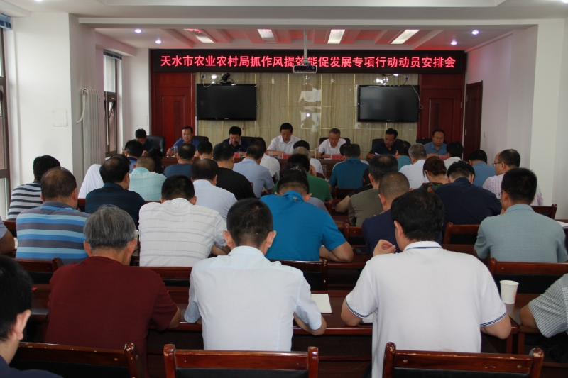 8月6日上午,天水市农业农村局召开局系统“抓作风提效能促发展”专项行动动员安排会。会上,传达学习了全市“抓作风提效能促发展”专项行动动员部署会精神,宣读了《天水市农业农村局“抓作风提效能促发展”专项行动实施方案》,市农业农村局党组书记、局长逯国文对全市农业系统深入开展专项行动进行了具体安排,市纪委监委第五派驻纪检监察组组长刘学森对开展好这次活动提出了要求。