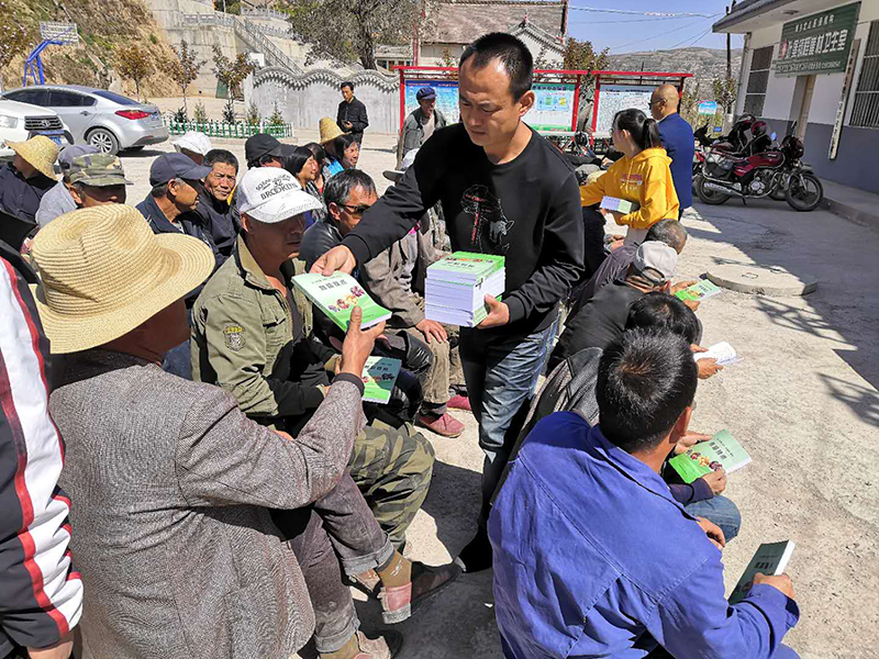 叶堡镇程崖村现有232户1381人,有贫困户3户,是市果树研究所派驻帮扶队员定点帮扶村。该村栽植苹果和花椒700多亩,苹果和花椒栽植收入是农户的主要经济来源。当前正值果树花果管理关键时期,果园管理水平的高低将直接影响着当年果树效益。技术人员以苹果和花椒当前管理技术要点为切入点,通过课堂讲授和果园现场指导,对果树疏花、整形修剪、病虫防治和果园土壤管理等方面存在的问题进行了细致讲解。技术人员还为村民发放技术书籍200余本。这次技术培训服务取得了良好的效果,参加培训村民表示,将按照专家指导,提高果园管理水平,实现增产增收。